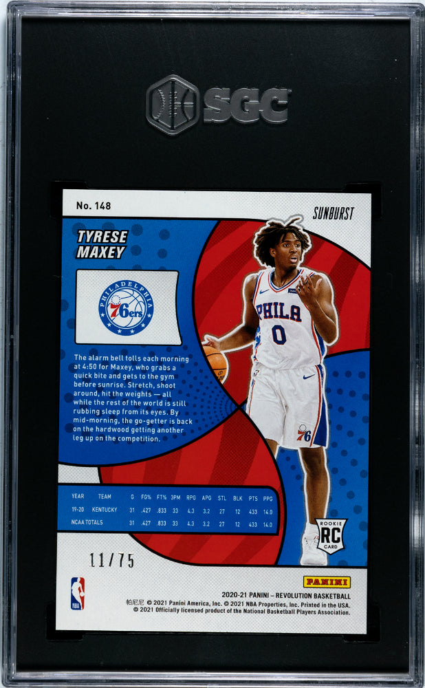 2020-21 Revolution Tyrese Maxey Sunburst Rookie /75 SGC 10